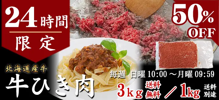 ![【24時間限定】3kgセット・送料無料!牛ひき肉3kg (250g×12パック) [50%OFF] [加熱用] タイムセール限定 数量限定 先着順](https://image1.shopserve.jp/gyutoro.com/pic-labo/llimg/minti_3kg_ts.webp?t=20251106152024)