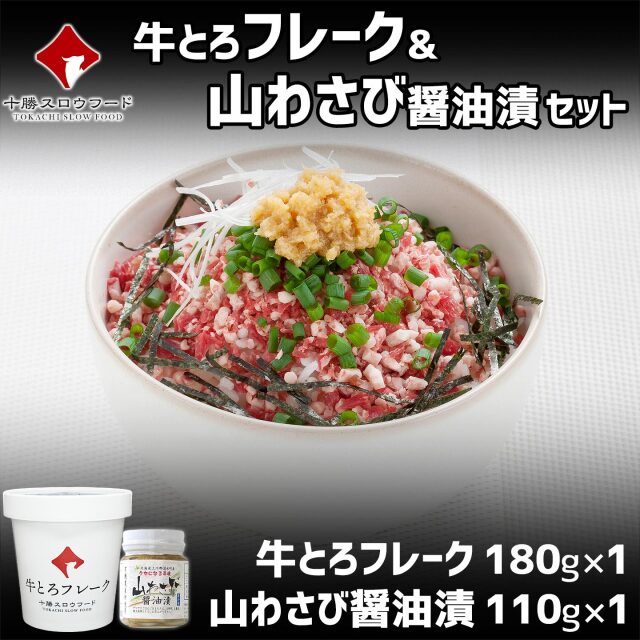 | 製品名: | 牛とろフレーク180g×1 山わさび醤油漬×1 牛とろの北海道十勝スロウフード |