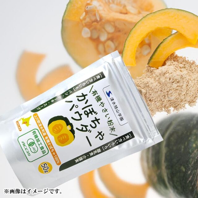 北海道十勝清水町の圃場で農薬や化学肥料を使用せず、木炭とたい肥のみで栽培した有機栽培かぼちゃを100%使用し、パウダー状に加工しました。添加物・着色料は一切使用しておりません。