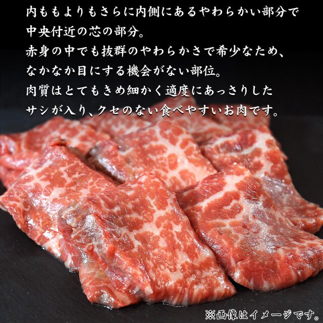 | 内ももよりもさらに内側にある柔らかい部分で中央付近の芯の部分。 赤身の中でも抜群のやわらかさで希少なのでなかなか目にする機会がない部位。 肉質はとてもきめ細かく適度にあっさりしたサシが入り、クセのない食べやすいお肉です。 いつもの食卓をちょっと贅沢に。 提携牧場で育った健康的な牛だから、安心安全。 JANコード:4562329592452 |